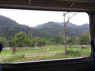 ぎりぎり汽車の転回に間に合いました!! 章央、フェンスにへばりついてみています。