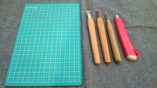 3.2で書いた絵を消しゴムに写すために、消しゴムにトレーシングペーパーをあてて、指等でトレーシングペーパーの絵をこすります。
