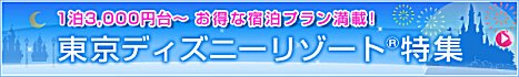 東京ディズニーランド・ディズニーシー周辺の素敵なホテルを安く予約できるサイトです(高速バス予約もできる) 楽天トラベルの特集サイトです。早く予約すると安いオフィシャルホテルなど、良い条件のホテルが見つかります。 |