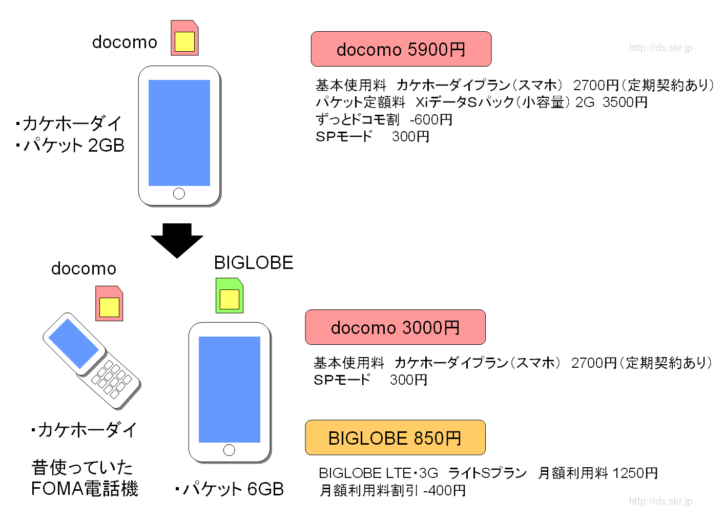| ・ | スマートフォン1台 ⇒ FOMA携帯+スマホ(2台もち) |