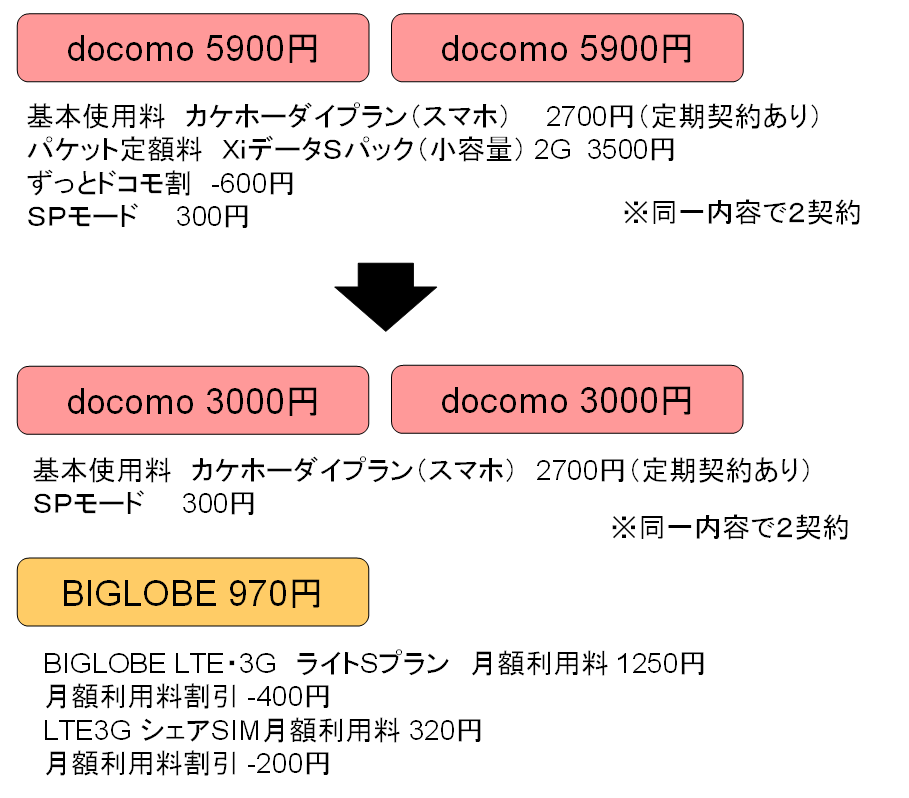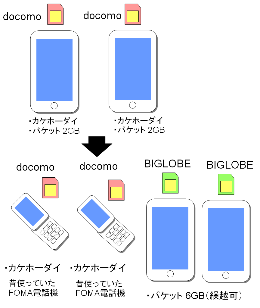 | ・ | スマートフォン2台⇒FOMA携帯2台+スマホ2台 |