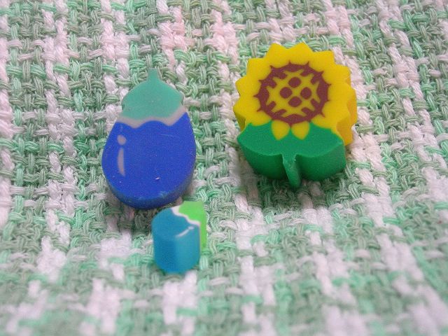 ひまわり&なすび消しゴムです |