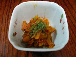 2.フライパンにサラダ油をひき、1がやわらかくなるまで炒める
