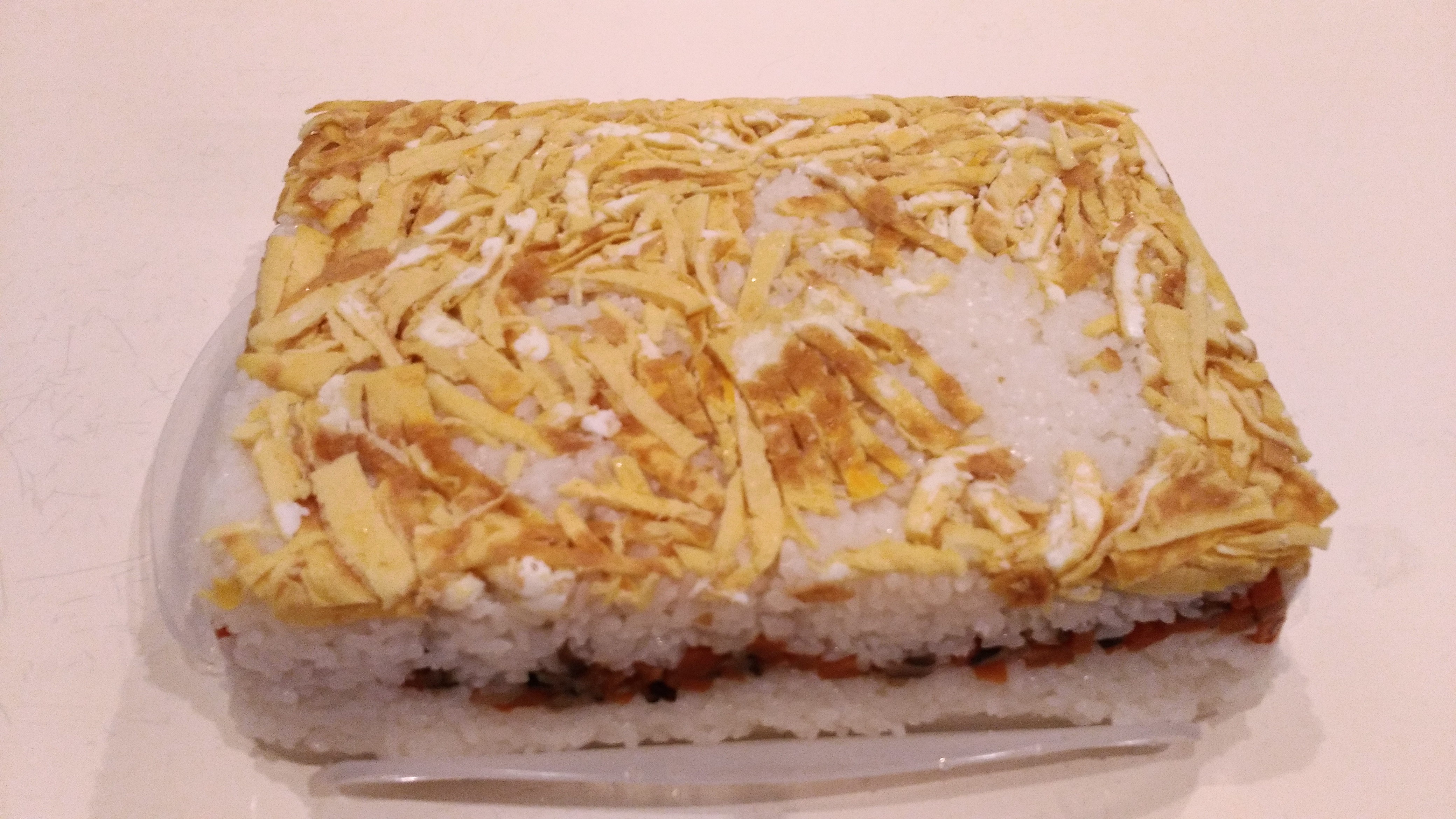 9.お皿に入れ物を逆さにして、できた寿司をいれます。