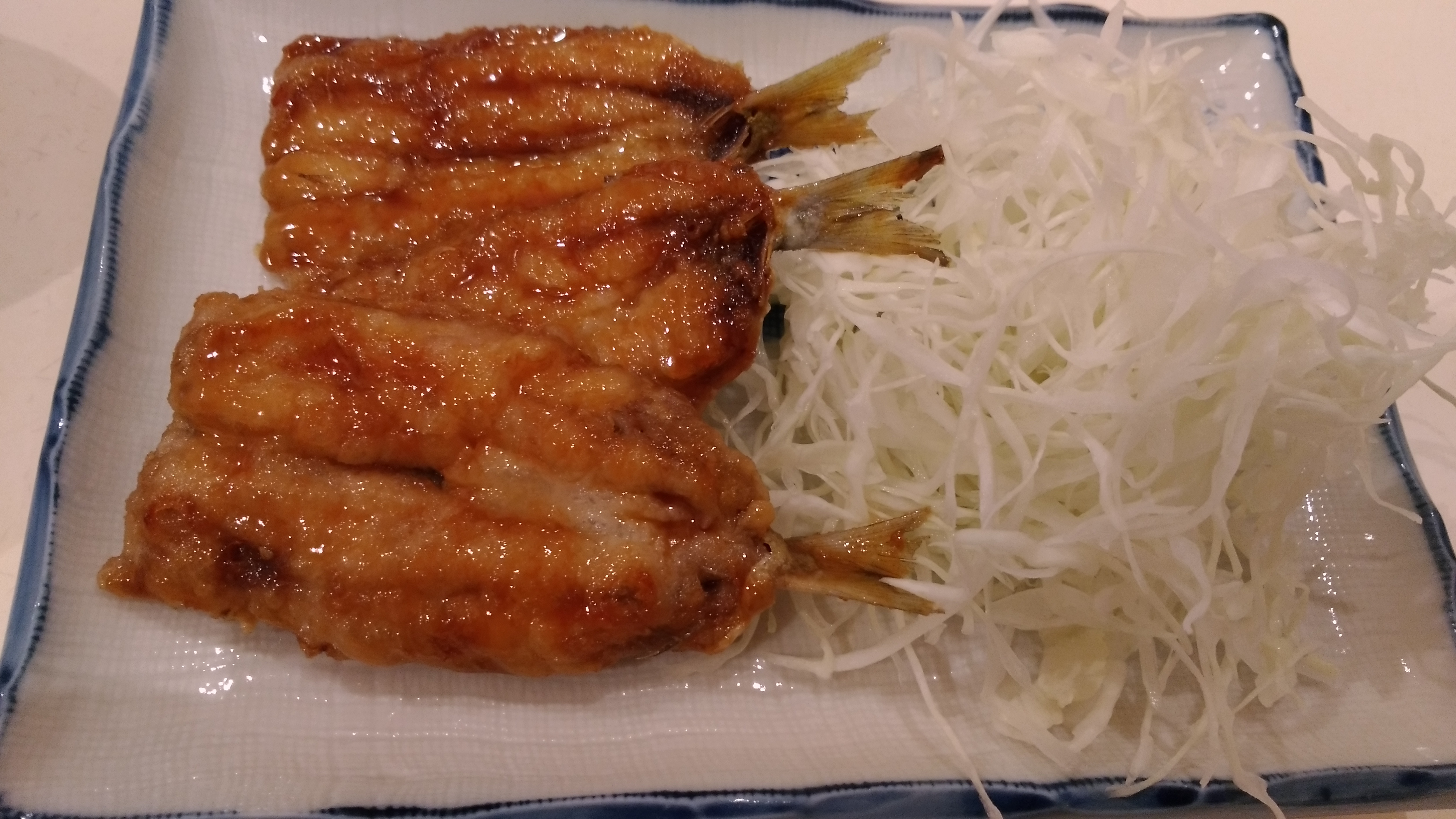 7.しょうゆと砂糖とおろししょうがを混ぜたタレをつけて食べます。