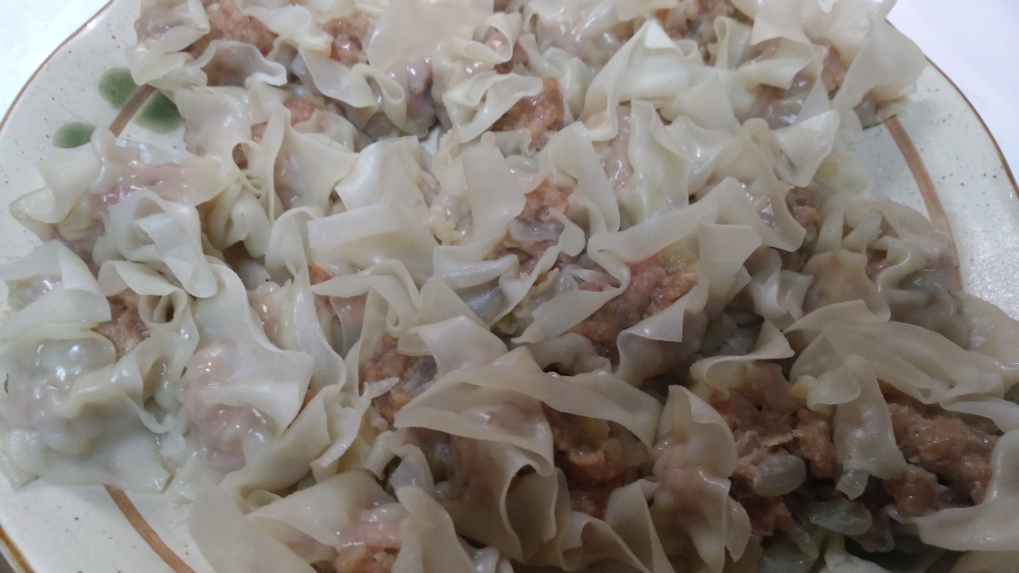 6.その上にしゅうまいを置き、中火で15分蒸します。
