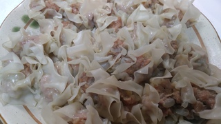 4.3に水にといた片栗粉をいれて、とろみがつけば、できあがり。