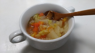 5.白菜がしんなりしてきたら、水を適量足して、コンソメの素を入れて溶かしてから、塩・こしょうで味付けします。