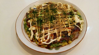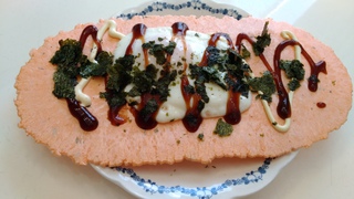 4.3にソースをかけて、味付け海苔をかけたら、できあがり。