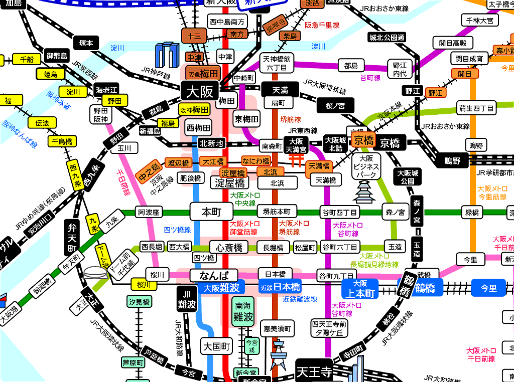 【大阪・電車路線図】大阪市営地下鉄・JR・私鉄の鉄道路線図[PDF]&地下鉄乗り換え情報・アクセスマップ