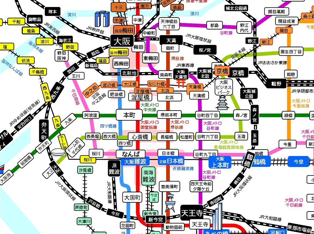 【大阪・電車路線図】大阪市営地下鉄・JR・私鉄の鉄道路線図[PDF]&地下鉄乗り換え情報・アクセスマップ