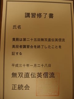 2018年1月 「第25回無双直伝英信流居合道高段者講習会」の様子