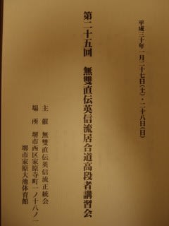 平成30年1月27日に、堺市家原大池体育館において「第25回無双直伝英信流居合道高段者講習会」が行われました。