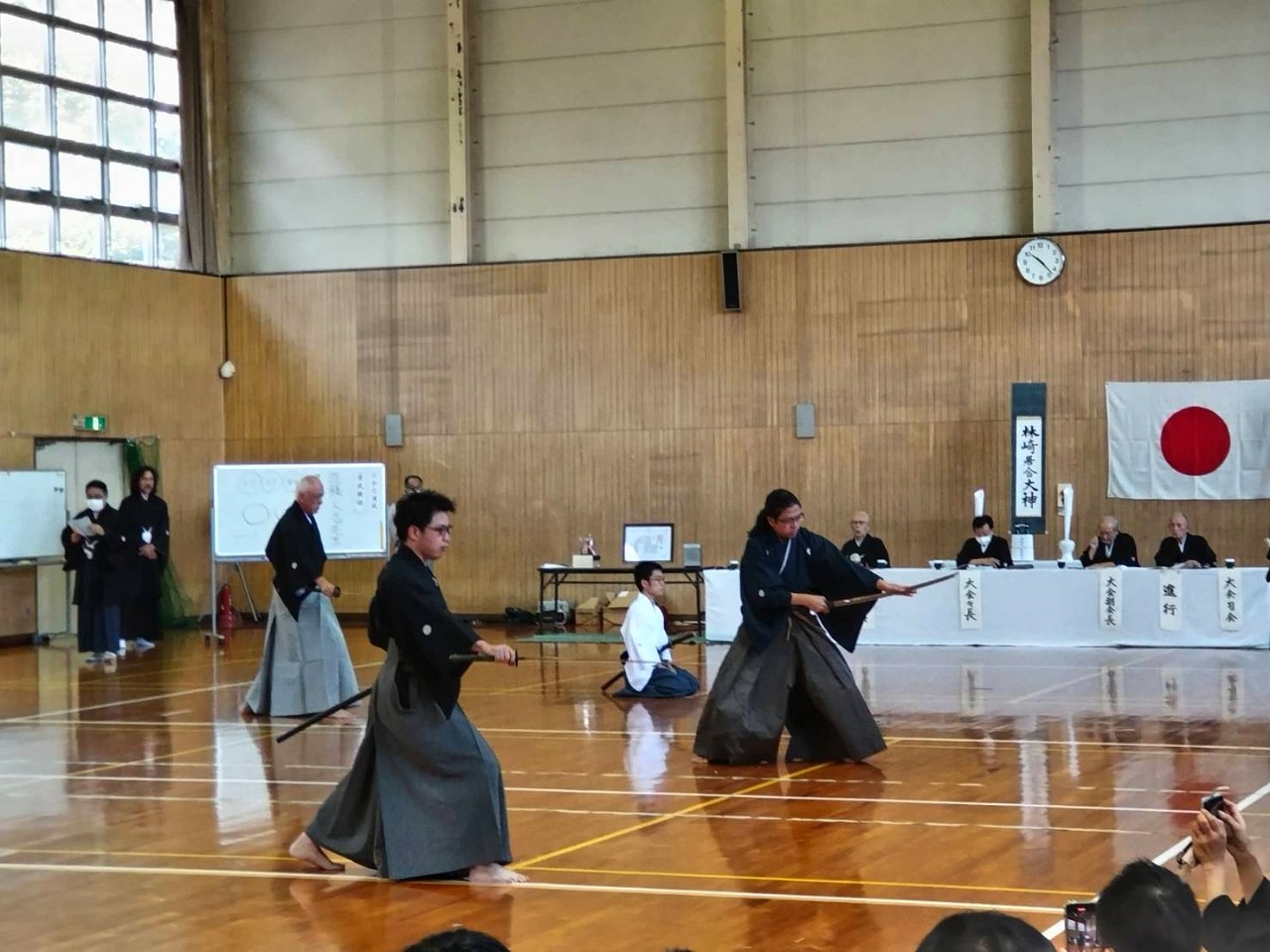 5日には、全国各地から剣士が来られ、6段から8段の段位審査会がおこなわれました。段位審査には、学科と実科が行われました。倭館道場からも段位審査を受け、無事合格しました。