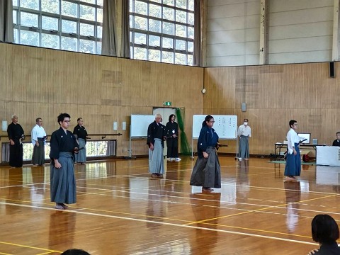 四方切り・組み太刀が行われた後、初心者の部・有段者の部・高段者の部の順で演武を行いました。