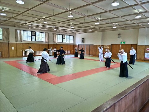 8月11日は、県内より知り合いの剣士や、宗家関係の先生等が練習に参加されました。この日は、コロナ禍以来でもっとも力強い稽古ができ、皆、清々しい汗を流しました。(一同と一緒に汗をかくことに、喜びを感じられる日でありました。)