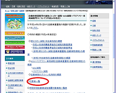 平成24年5月1日から平成27年4月30日まで、「新エコカー減税」ということで、エコな自動車に関する税金が安くなっています。