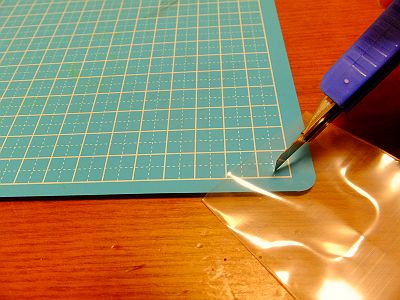 そして、カッターでチャック袋にメダルを入れる切れ目を入れます。