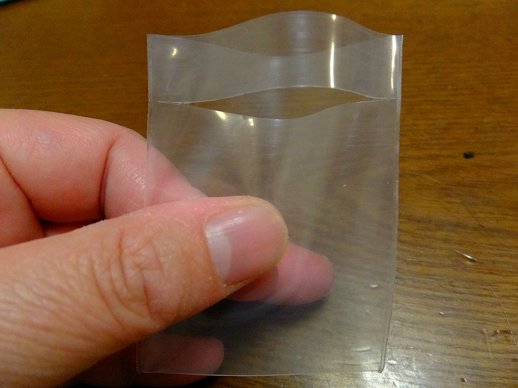 まずは、チャック袋を切ります。底から65mmの高さでカットします。