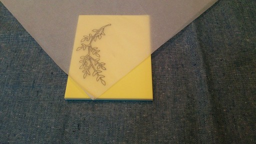 3.2で書いた絵を消しゴムに写すために、消しゴムにトレーシングペーパーをあてて、指等でトレーシングペーパーの絵をこすります。