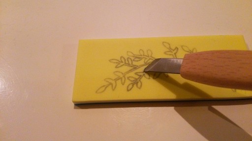 4.トレーシングペーパーの絵を消しゴムに写しました。
