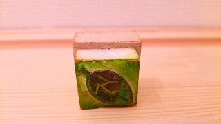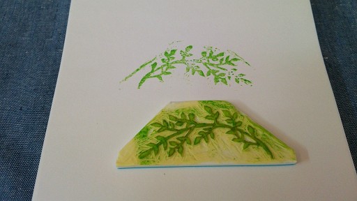 8.葉っぱの部分だけに緑色のインクをつけました。