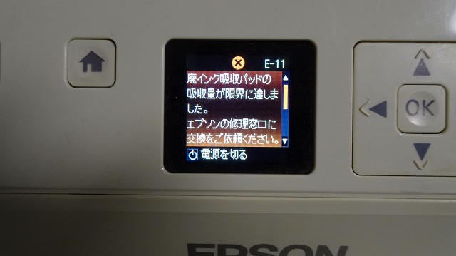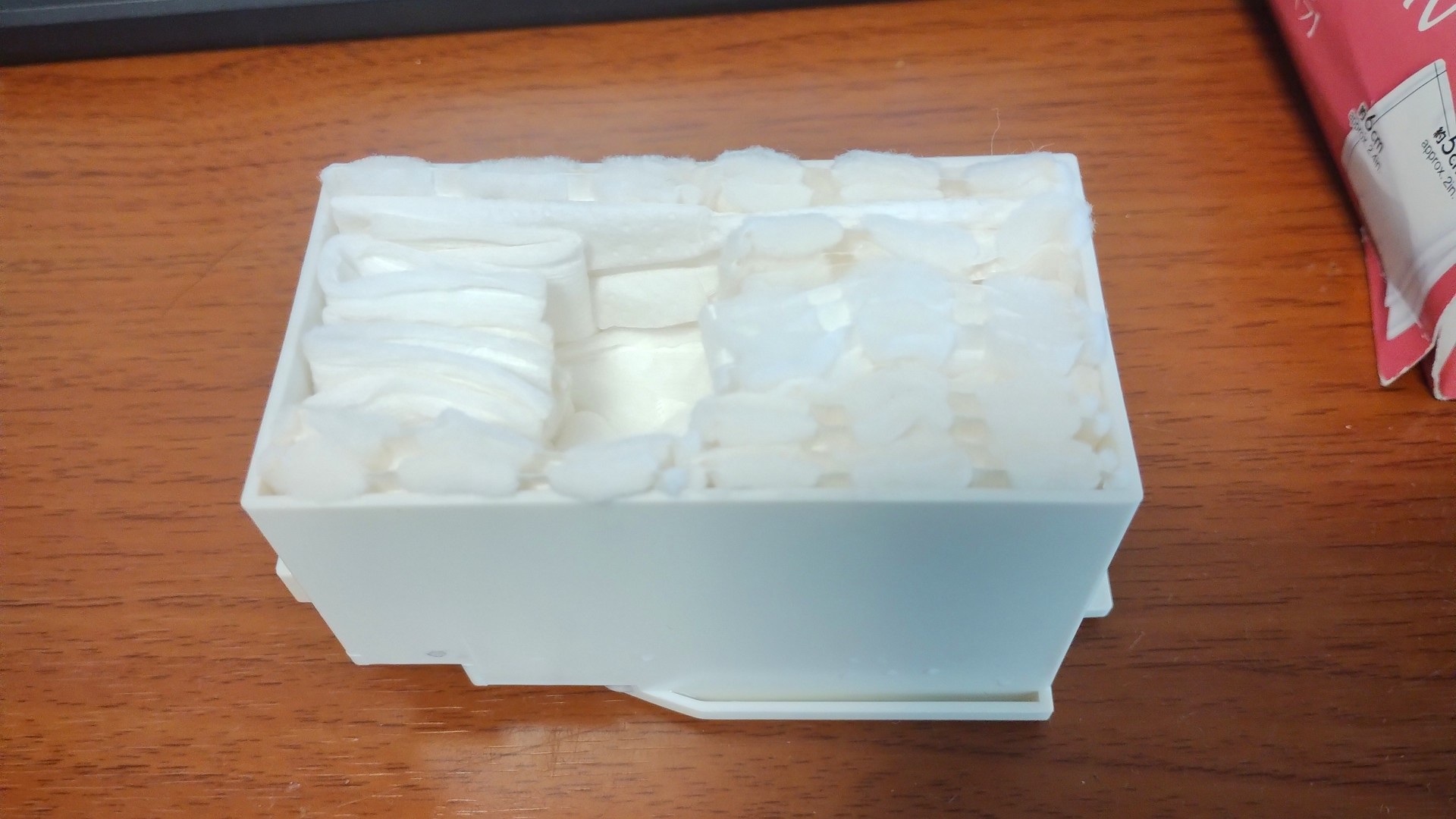 使えば使うほど、廃インクバッドにちょっとずつインクが吸収されていきます。そして、長い時間を経ていくと、吸収するインクがいっぱいになってしまいます。