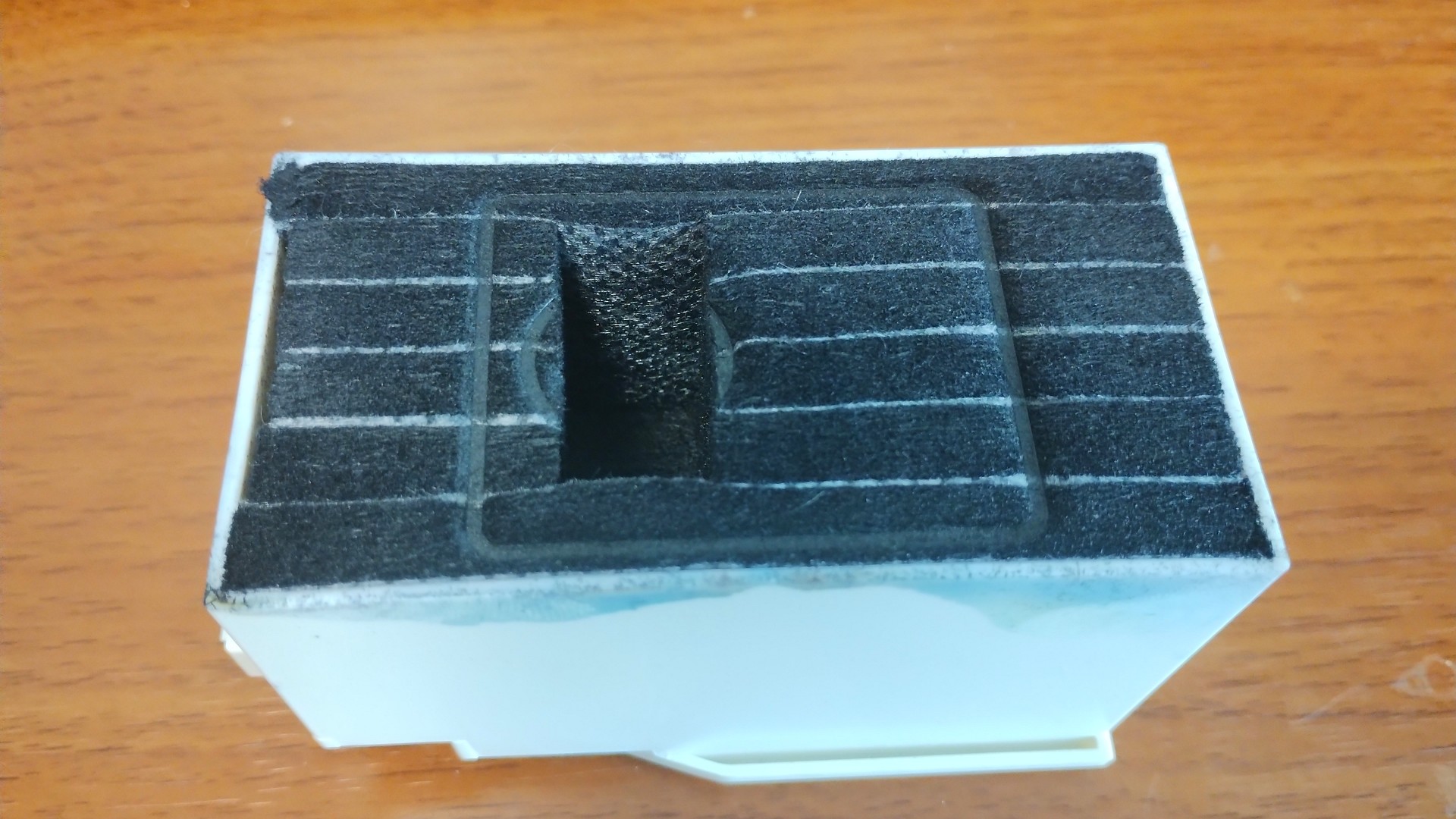 このパッドは、インクがしっかりしみ込んでいて、利活用することは難しそうです。とりあえず取り外して、ビニル袋にいれておきましょう。
