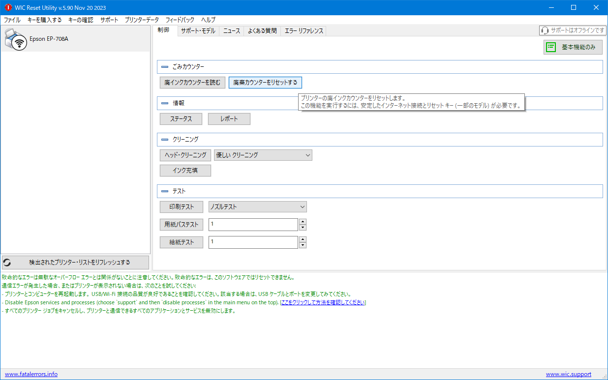 プリンタ 廃インク リセット」で検索してみると、いくつか出てきます。